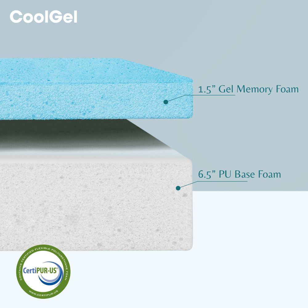 - 1.5-inch gel memory foam top layer actively draws heat away from your body for a cooler sleep